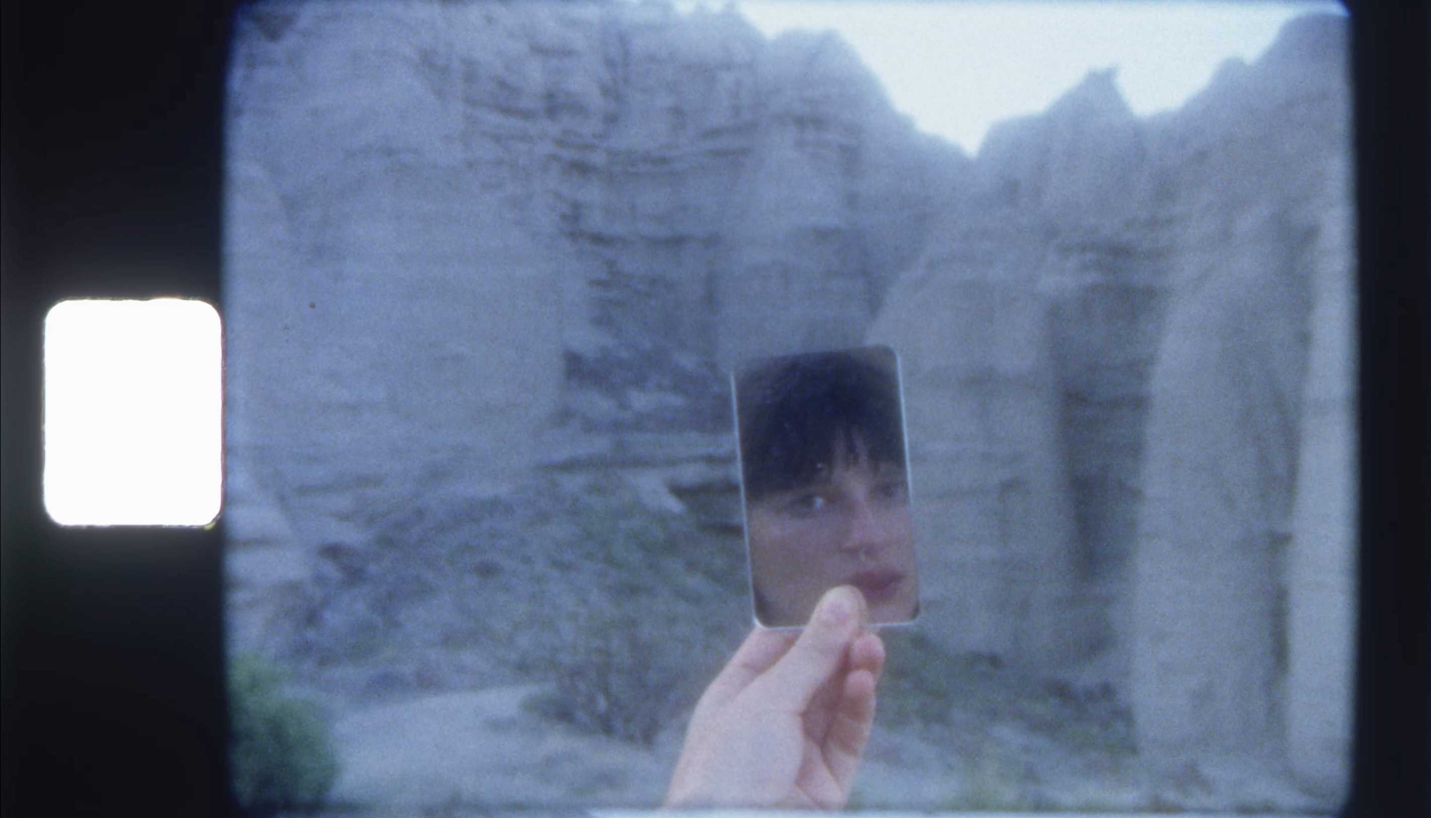 The Crying Mountain is a sound and video installation that calls for the audience’s participation by engaging in a collective ritual of memory and mourning. The installation consists of six reels of Super 8 film and recordings of matching poems. It depicts the mythical evocation of a fictional woman saint, gestures addressing the liminal space between life and death, subjugated landscapes, but also practices of mending the earth, offering a poetic visual metaphor for loss.